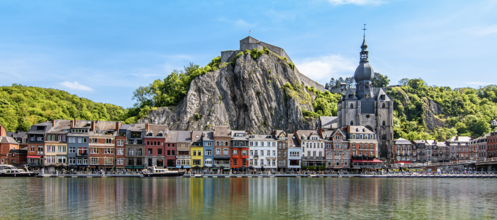 Dinant to malownicza, 13-tysięczna miejscowość usytuowana w południowej Belgii, w Walonii, nad Mozą. Słynie z urzekającego krajobrazu, który tworzą wysokie klify i przepływająca przez centrum miasteczka rzeka.