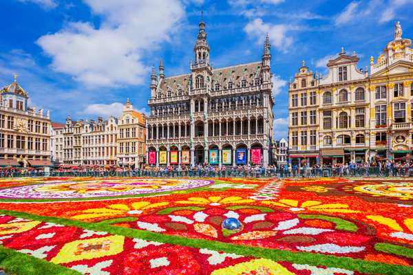 Brussels, Belgium: Grand Place during Flower Carpet festival. This year theme was Mexico.