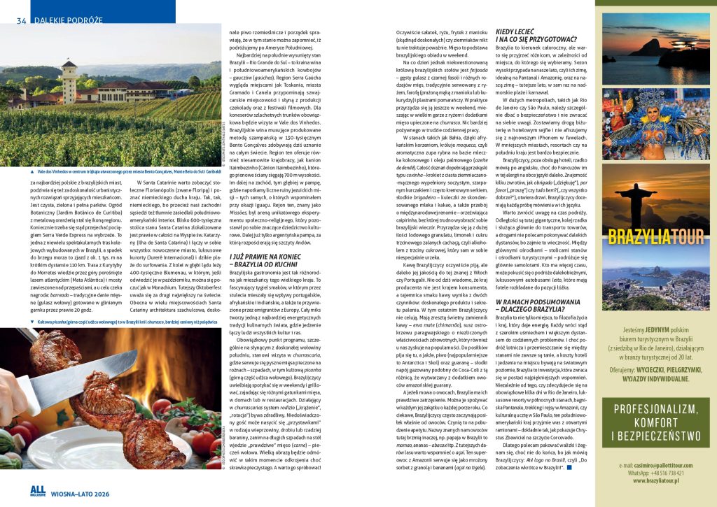 W najnowszym, wiosenno-letnim wydaniu magazynu „All Inclusive” w dziale „Dalekie Podróże” poczytny autor R.A. Olek zabiera nas do Brazylii, ale nie tylko do Rio de Janeiro czy São Paulo… Poniżej publikujemy początek jego obszernego tekstu. Dziękujemy również za miłą, owocną i profesjonalną współpracę przy powstaniu tego brazylijskiego artykułu BCT Incentive i Brazylia Tour PL. Cały wciągający tekst o Brazylii można przeczytać na str. 26–35 najnowszego, wiosenno-letniego numeru magazynu All Inclusive, który dostępny jest pod tym linkiem: https://www.all-inclusive.com.pl/najnowszy-numer/