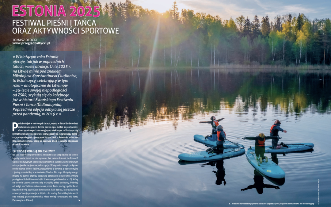 W najświeższym, wiosenno-letnim wydaniu magazynu „All Inclusive” w ramach działu „EuroPodróże” zamieszczamy interesujący artykuł Tomasza Otockiego przybliżający Estonię 2025 r., Festiwal Pieśni i Tańca oraz aktywności sportowe w tej bałtyckiej republice. Jak pisze nasz autor: „W bieżącym roku Estonia oferuje, tak jak w poprzednich latach, wiele atrakcji. O ile 2025 r. na Litwie minie pod znakiem Mikalojusa Konstantinasa Čiurlionisa, to Estończycy, celebrujący w tym roku – analogicznie do Litwinów – 35-lecie swojej niepodległości od ZSRR, szykują się do kolejnego już w historii Estońskiego Festiwalu Pieśni i Tańca (Üldlaulupidu). Poprzednia edycja odbyła się jeszcze przed pandemią, w 2019 r. Podobnie jak w minionych latach, warto w Estonii odwiedzać malownicze plaże, liczne centra spa, oddać się aktywnościom sportowym i rekreacyjnym, a także poczuć historyczny klimat tego bałtyckiego kraju, który ogłosił po raz pierwszy deklarację niepodległości jeszcze w lutym 1918 r. Powstała wówczas Republika Estońska, którą od czerwca 1940 r. zaczęła okupować Armia Czerwona.”