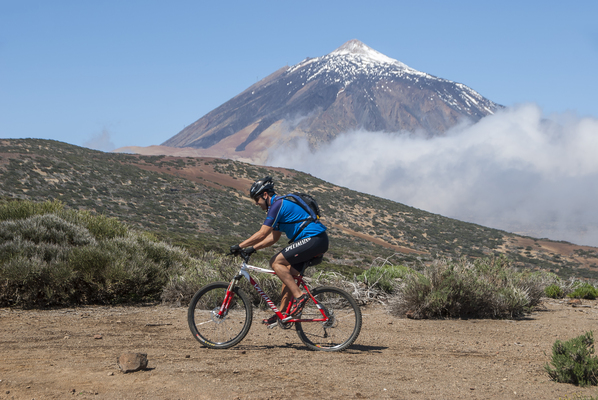 Tenerife, Canary islands: Athlete practicing mountain biking in the Teide volcano area