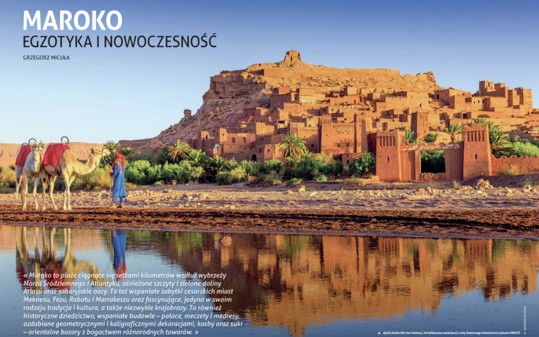 Zapraszamy z całego serca do wciągającej lektury! Grzegorz Micuła pisze, że: „Maroko to plaże ciągnące się setkami kilometrów wzdłuż wybrzeży Morza Śródziemnego i Atlantyku, ośnieżone szczyty i zielone doliny Atlasu oraz saharyjskie oazy. To też wspaniałe zabytki cesarskich miast Meknesu, Fezu, Rabatu i Marrakeszu oraz fascynująca, jedyna w swoim rodzaju tradycja i kultura, a także niezwykłe krajobrazy. To również historyczne dziedzictwo, wspaniałe budowle – pałace, meczety i medresy, ozdabiane geometrycznymi i kaligraficznymi dekoracjami, kasby oraz suki – orientalne bazary z bogactwem różnorodnych towarów. Ten 36-milionowy kraj, leżący między Morzem Śródziemnym, Atlantykiem a Saharą, jest obecnie najpopularniejszym kierunkiem podróży w Afryce. Dzięki inwestycjom w infrastrukturę, promocji nowych miejsc i zwiększeniu połączeń lotniczych Maroko wyprzedziło Egipt i RPA w liczbie przyjętych turystów. W 2024 r. zostało odwiedzone przez 17,4 mln gości z zagranicy, co oznacza wzrost o 20 proc. w porównaniu z rokiem poprzednim. Turystyka generuje 7 proc. PKB kraju, zapewniając pracę ok. 2 mln osób (zatrudnienie bezpośrednie i pośrednie). Przychody z tego sektora w 2024 r. osiągnęły 104 mld dirhamów marokańskich (ok. 10,4 mld dolarów). W czym tkwi tajemnica tego sukcesu? Maroko to wyjątkowe połączenie atmosfery Orientu z ciągle rozwijaną infrastrukturą turystyczną. W tym roku władze liczą na kolejny rekord. Rząd ma ambitne plany dalszego rozwoju turystyki, wyznaczając za cel 26 mln gości rocznie, szczególnie w kontekście organizacji Mistrzostw Świata w Piłce Nożnej 2030, których Maroko będzie współgospodarzem wraz z Hiszpanią i Portugalią. Z tego też powodu planowane są remonty i rozbudowa kilku lotnisk, aby zwiększyć ich przepustowość z obecnych 40 mln do 80 mln pasażerów do 2030 r. Liczba Polaków odwiedzających Królestwo Marokańskie zbliża się do 100 tys. rocznie. Dzięki bezpośrednim połączeniom lotniczym i rozbudowywanej siatce lotów z Polski Maroko staje się całorocznym kierunkiem naszych podróży. Polscy turyści należą do grupy o największej dynamice wzrostu odwiedzin i nie są to wyłącznie wakacyjne wyjazdy zorganizowane. Aby przyjechać do tego usytuowanego w północno-zachodniej części Afryki państwa, Polacy nie potrzebują wiz – wystarczy ważny paszport (na pobyt turystyczny do 90 dni). Maroko odległe jest od naszego kraju tylko o ok. 4–5 godz. lotu.”
