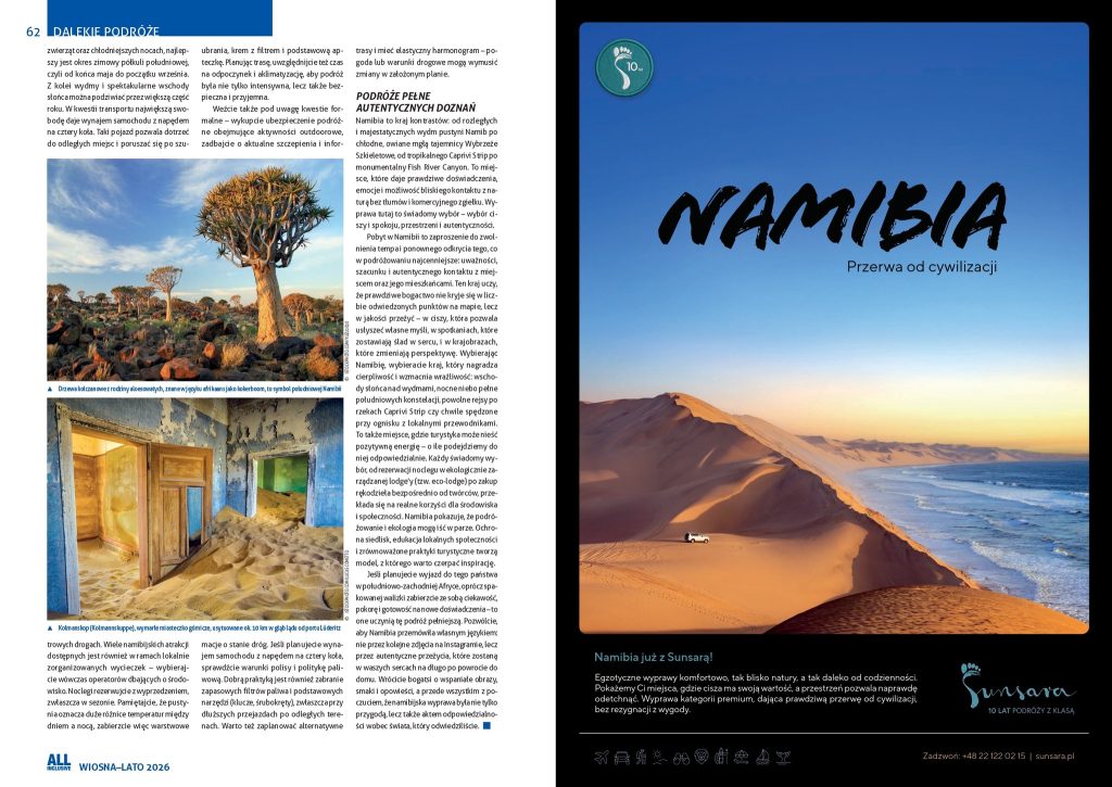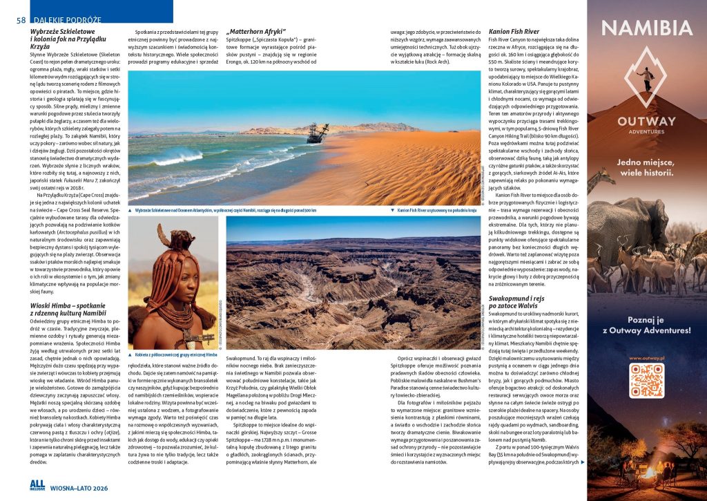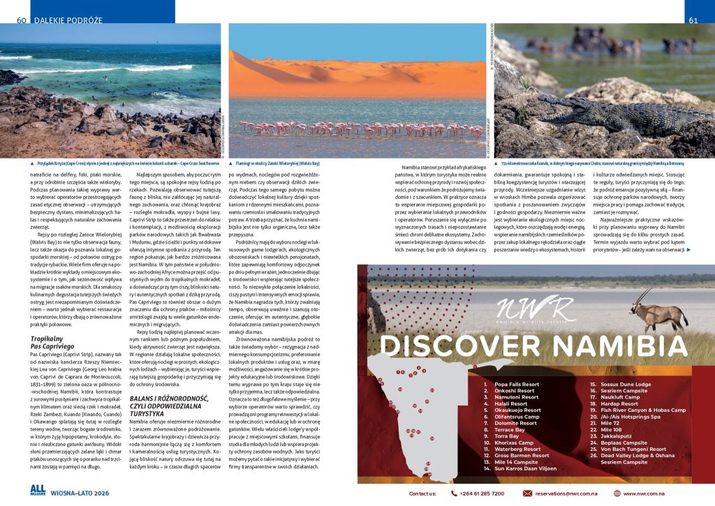 Cały tekst o Namibii – oddechu świeżości można przeczytać na str. 54–62 najświeższego, wiosenno-letniego numeru magazynu „All Inclusive”, który dostępny jest pod tym linkiem: https://www.all-inclusive.com.pl/najnowszy-numer/