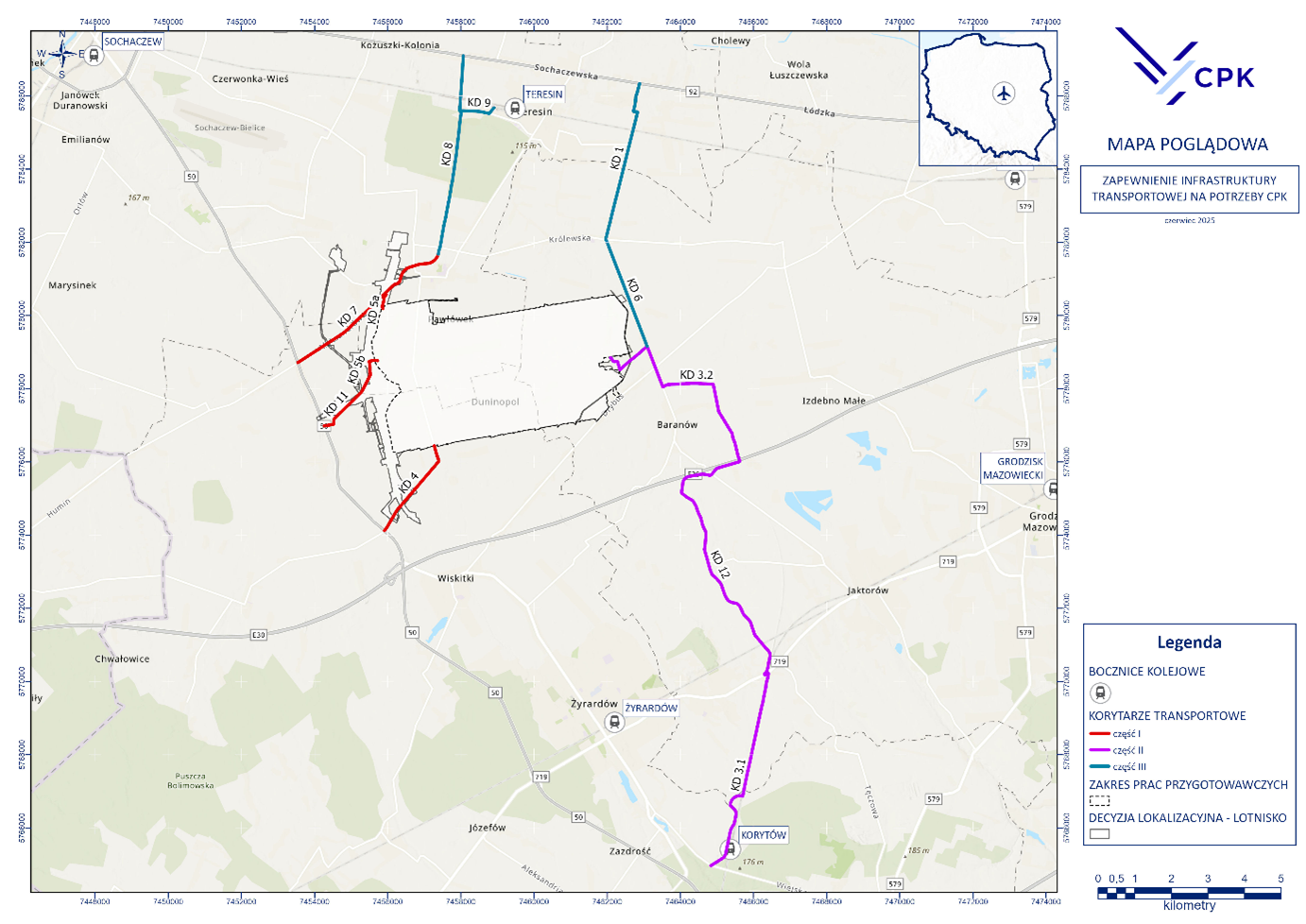 Zakończenie prac w tym etapie planowane jest na IV kwartał 2027 roku. Centralny Port Komunikacyjny to strategiczna inwestycja, której celem jest stworzenie nowoczesnego systemu komunikacyjnego kraju, integrującego transport lotniczy, kolejowy i drogowy. Aby w 2032 roku mogły zostać oddane do użytku pasażerów nowe lotnisko i pierwszy odcinek Kolei Dużych Prędkości, niezbędne jest przeprowadzenie wielu projektów budowlanych. Plan postępowań inwestycyjnych spółki CPK zakłada, że w latach 2026 – 2028 uruchomionych zostanie niemal 100 postępowań o wartości powyżej 1 mln zł netto każdy. Tylko w 2026 roku orientacyjna wartość przetargów sięgnie ok. 40 mld zł. Największe z nich mają dotyczyć właśnie budowy dróg, a także robót budowalnych na linii kolejowej Warszawa – Łódź oraz budowy infrastruktury lotniskowej. Całość oznaczać będzie wdrażanie innowacyjnych technologii, nowe inwestycje i powstanie tysięcy miejsc pracy. Inwestycje te staną się również kołem zamachowym rozwoju polskiej gospodarki. |