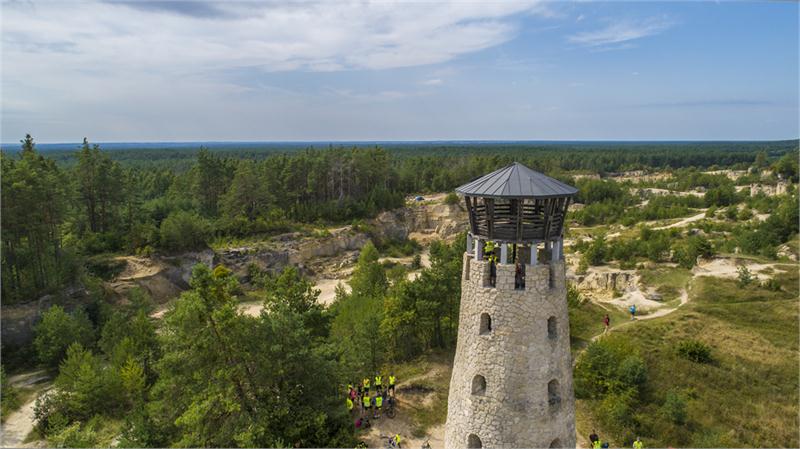 Kamieniołom Babia dolina i ponad 18-metrowa kamienna baszta widokowa w Józefowie na Roztoczu